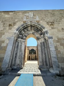 Da wir bis zum Einwintern noch reichlich Zeit haben, bleiben wir lange in Siracus. Es gibt uns Zeit den größten Altar der griechischen Antike und sowohl das antike römische wie auch das antike griechische Theater zu besuchen. Beeindruckende Zeugnisse der Zeitgeschichte. Auch die Festung am Eingang zur Bucht steht auf der Liste. Während des Besuchs nimmt der Wind schon reichlich Fahrt auf: Der Rückweg zum Boot wird nass, denn in der großen Bucht baut sich eine Welle auf, die für unser Beiboot schon grenzwertig scheint.