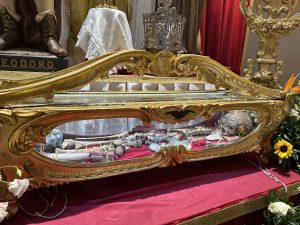 Es fing etwas ruppig an: in der Mittagspause schlug (klopfen konnte man das nicht nennen) jemand mehrfach an unsere Bordwand und Stimmen forderten uns auf, an Deck zu kommen. Als wir die Köpfe aus dem Niedergang steckten, standen da eine Beamtin und ein Beamter von der Guardia Costiera. Ob wir denn nicht die Website der Küstenwache gelesen hätten (hatten wir nicht), wir müssten uns sofort 10 m nach vorne verholen, JETZT! Ein Blick auf die anderen Boote eröffnete uns, dass man dort schon am Leinen sortieren war. Also gut, auch wir lösten unsere Festmacher und zogen unser Boot nach vorne, nicht ohne die Hilfe des etwas verdatterten Polizisten, dem ich kurzerhand eine der Leinen in die Hand gedrückt hatte… Im Gespräch erfuhren wir dann, dass es im Rahmen der Feierlichkeiten für den Stadtpatron am Abend ein großes Feuerwerk geben würde, für das wir Platz