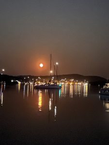 Zunächst entschieden wir uns, wieder in Pula Halt zu machen. Diesmal aber nicht in einer Marina, sondern wir haben in der großen Hafenbucht geankert. Mit Blick auf die Werft, mit schick angestrahlten Kränen bei Nacht. Sah schön aus und wir hatten einen guten Zugang zur Stadt. Das haben wir auch reichlich genutzt, zweimal Essen gehen und eine Shopping Tour mit Baumarkt. Pula ist eine hübsche Stadt mit interessanten Sehenswürdigkeiten. Nach zwei Tagen Stadt suchten wir dann aber mal wieder etwas Ruhe.